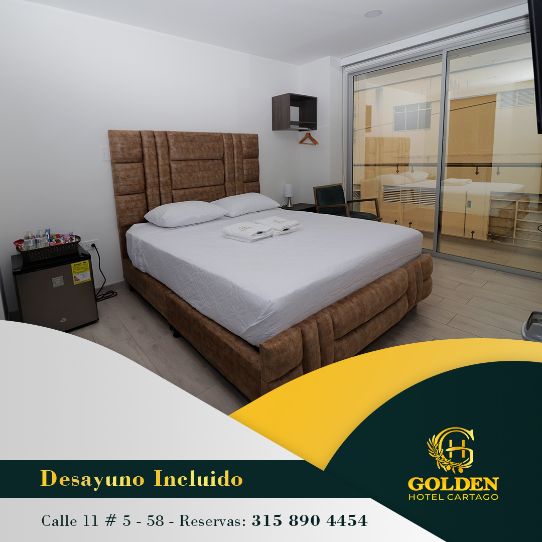 El Hotel y Gastrobar Golden S.A.S. es un espacio diseñado para el descanso y el confort, ubicado en el centro de la Ciudad de Cartago, a tan solo media cuadra del Parque de Bolívar; sus agradables instalaciones y la amabilidad de sus colaboradores harán de su estancia una experiencia memorable y satisfactoria.